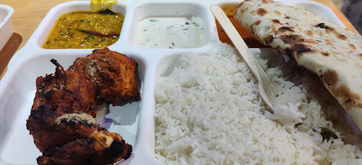 The thali itself was generous, coming with a mix of sides like butter naan, ghee rice, dal, salad, and a mildly spiced gravy that complemented the chicken really well. The naan was soft with a slight crisp on the edges, perfect for scooping up the rich curry.