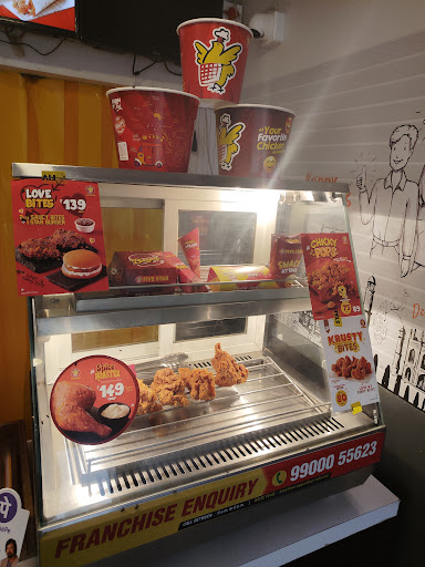 No nonsense chain restaurant preparing fried chicken dishes to eat in or take away.