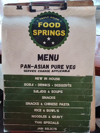 Read moreVisited Food Springs last weekend. The place opens by 12pm and we were there by 12:30, and the first customers. By the time we ordered main course, the place full and people had started to wait.
