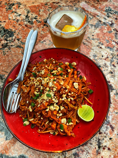 Main course and dessert Pad Thai noodles ⭐️⭐️⭐️⭐️⭐️ Baked blueberry cheesecake ⭐️⭐️⭐️⭐️⭐️ The Pad Thai noodles were loaded with well marinated tofu and chicken and cooked to perfection with the classic peanut based tamarind sauce. Coupled with lime, it just tasted amazing! The cheesecake was rich and creamy in texture and the blueberry sauce had the right balance of sweet and tangy giving the dessert a wholesome taste and texture!