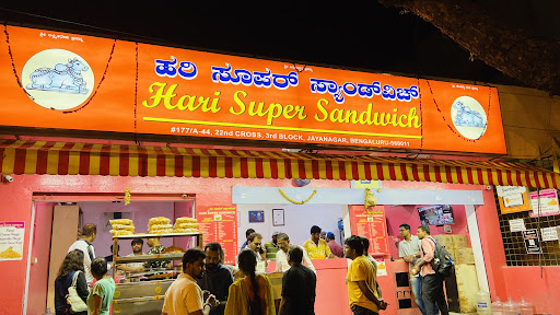 Read moreAfter being in Bengaluru for many years , finally got a chance to try sandwiches of popular Hari Super Sandwich located in city's one of the prime location Jayanagar. This eatery serves from plain Maggi noodles to Chats & Pav Bhaji to varieties of shakes. Good place to quickly beat the hunger. Tried American Sweet Corn Sandwich Rs.50 & Chocolate Sandwich Rs.50. I would like to rate American sandwich 2.5/5 as it was a bit soggy and flavour of garlic onion was more. As I heard from a few of my friends that they had spicy American sandwich here but I didn't feel so. It was normal spicy. Obviously, not recommended for those who abstain from onion garlic.