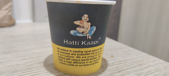 Read moreI went to get myself a really strong coffee and had asked the person making for the same. But it was very light and not for my liking. Maybe the person might have given me the wrong coffee... I would only rate the coffee I had 3stars, because it was just okay but the reason I gave them 4 stars is coz of what I read on the cup and did my own little digging into the brand and was pleasantly surprised and very much impressed. Impressed at the owner's resilience and also the social initiative attached with the brand. They employ specially abled and senior citizens as a part of their workforce to run their stores. Also for those wondering, Hatti means home and Kaapi means coffee, hatti kappi is just to say it's homemade coffee. Will try...