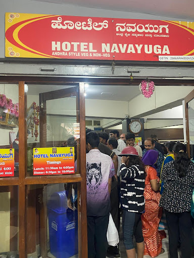 Read moreI was in Bengaluru Majestic and was searching for a good restaurant near me. Hotel Navayuga was rated well and seemed like something I should try. Their Chicken Biryani and non-veg items were suggested in the google reviews. Unfortunately I couldn't try non-veg that day. I opted for veg meals. The hotel opens at 11.30 AM and I went for lunch. I ordered veg meals (andhra meals). It was so so good. Meals included Rice, Sambar, Rasam, Pappu Aaku Koora, Side dish, Curd, Buttermilk and Papad. Along with these, Ghee, Pappu Podi and Pachadi were also served. The rice with podi and ghee was awesome. The pachadi was great. The sambar was delicious, the pappu aaku kura was yummy. The rasam tasted so good and so did the buttermilk. Finally the Curd, it was 👌🏻. Overall it was a fine and delicious lunch. It was unlimited meals and my tummy was absolutely full. It was authentic andhra meals. The staff was very polite and customer friendly. The dining area was spacious. The hand wash area and the toilets are well maintained. Cost: 150 INR (Meals + Watter bottle). I think meals costed 130 INR. Location: Near Majestic, walkable distance. Can get into the hotel from both sides (SC Road and also from the entrance opposite to Majestic bus stand, I think inside Mayura building).