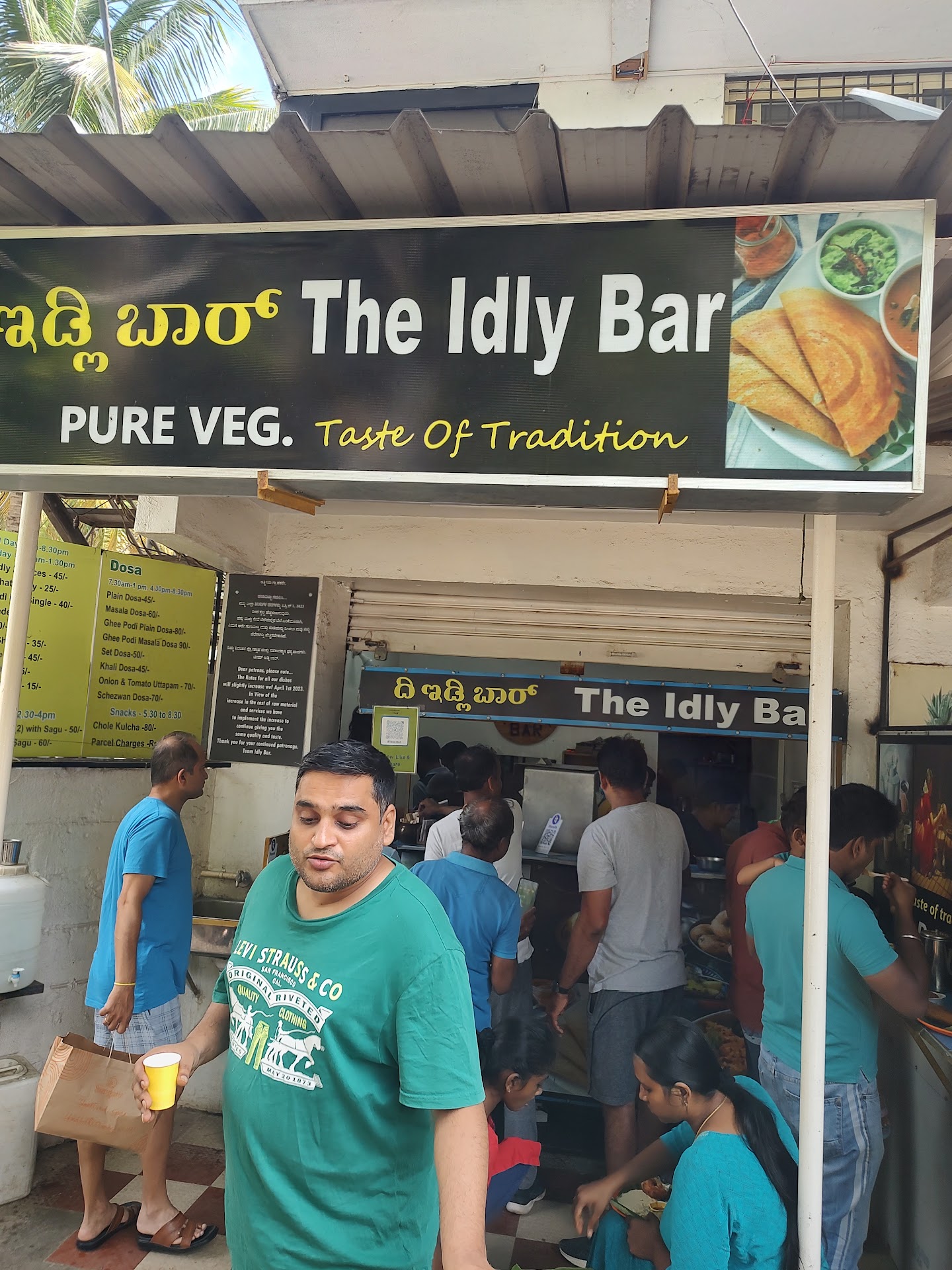 We as a family have been to Idly bar multiple times. This is one of our goto breakfast places. The Tatte idly + vada, butter khali dosas served hot are yummy and wonderful. We really love the sambar and red chutney. Jaggery coffee is something we always go for after the solids and highly recommend them. Over and above the food, the service - the wise conversations with uncle and the behavior from the courteous staff even though they are so so busy especially on weekends, are all unforgettable and give you a pleasant experience. Yes the only bummer is the space. Though, they do their best to cater as fast as possible. Lite veins - The small info laminates they put up time to time are quite interesting and also shows how much they value customers as well as their staff. Recently I saw a message they put up that their beloved staff "Chetan" was blessed...