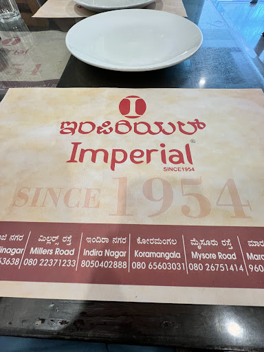 Read moreHotel Imperial, a classic and historic restaurant located on Residency Road in Bangalore. The restaurant has been around since 1950, and it is one of the oldest dining establishments in the city. Despite its age, the restaurant has managed to maintain a loyal following and expand to ten or so outlets across Bangalore. The ambiance of the restaurant is simple and unpretentious, with minimalistic decor and comfortable seating arrangements. The staff is friendly and welcoming, and the service is prompt and efficient. The menu at Hotel Imperial is diverse, featuring a mix of Kerala, Mughlai, and Chinese cuisine. The restaurant is well-known for its kebabs, ghee rice, grilled chicken, and special parathas. Must try are sholay kabab, which was perfectly deep fried and spiced to perfection. The butter chicken was another standout dish that was rich, creamy, and packed with flavor. The special imperial biriyani is also a hit, with tender pieces of meat and fragrant rice. I also like the Ceylon paratha, which was flaky, buttery, and delicious. The only downside is the fish, which is not as fresh as I would have liked in the many times I have dinned in there. However, this was a minor issue, and it did not detract from the overall quality of the food. I also appreciated the fact that the restaurant is open late into the night, making it a perfect spot for a late-night snack or meal.