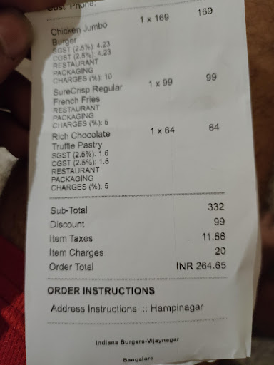 I ordered a jumbo chicken burger along with sure crisp French fries and a Choco lava cake.