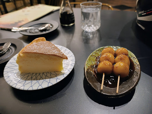 Next we got two desserts - the japanese cheesecake and the mitarashi dango.