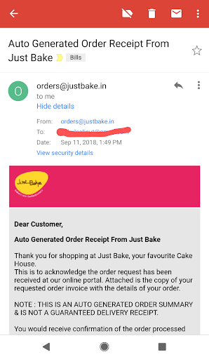 Thus what I want to say is kindly don't ever order from "Just Bake" that too, paying a huge amount + delivery charges, which absolutely might turn to be quite a disappointing one, only