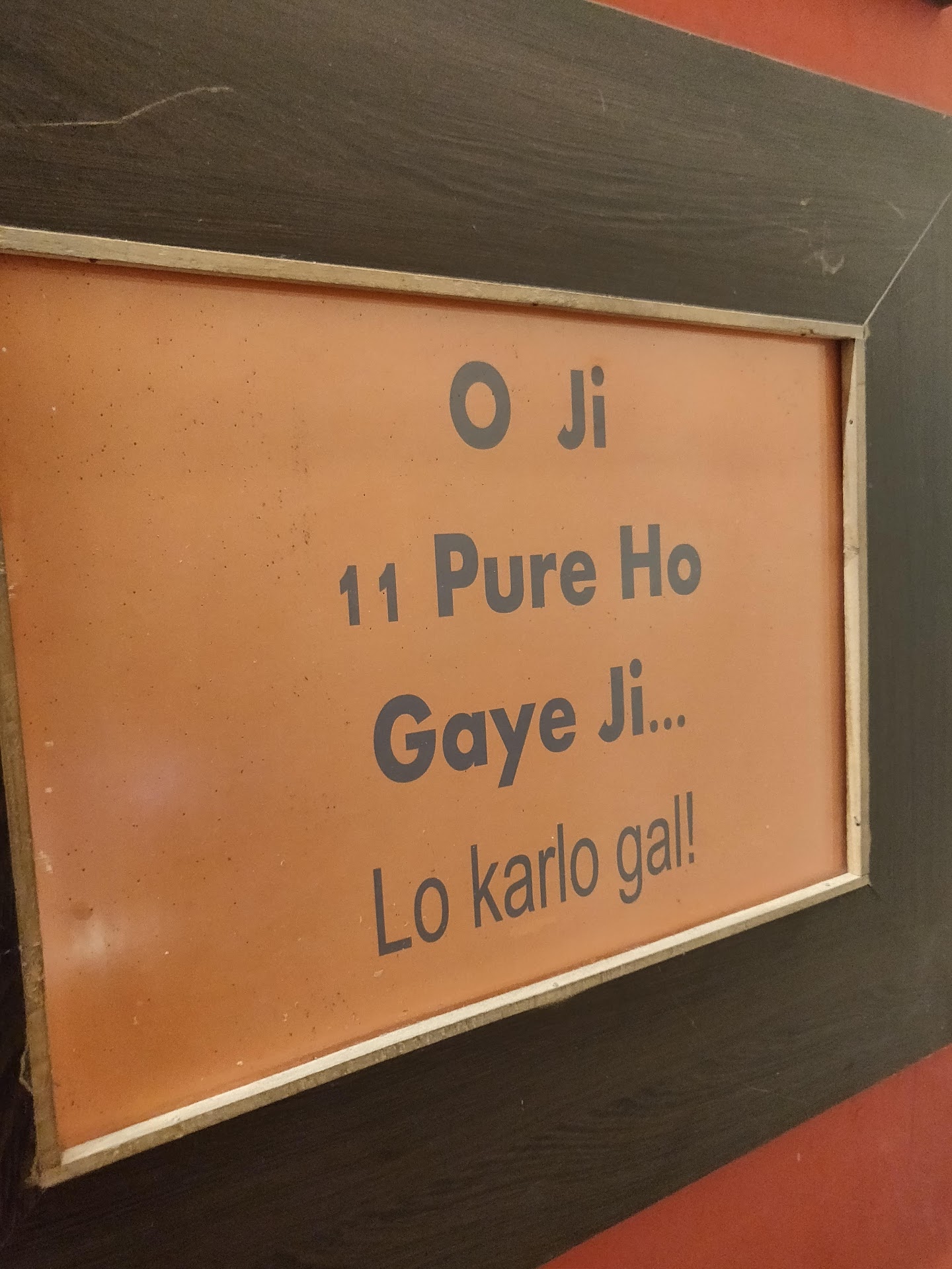 Food: Their menu card mentions explicitly that food is oily, i ignored and wanted to experience their original taste. It was a huge mistake, our south taste buds aren’t accustomed to butter-mania. Sarso da saag te makke di roti combo: Neither the saag nor the roti was of original flavour: disappointed. Paneer Butter masala combo: phulka were soft but too oily for us, paneer gravy was flavourful. Fried bhindi: pretty dry and hard, not upto the Mark Lassi: good but we prefer low sugar/less sweet option (customisation was not available).