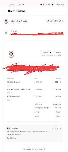 The plates and the overall place looked very unhygienic. Service was pathetic. We won't be ordering food from here again seeing it's extremely poor food standards.