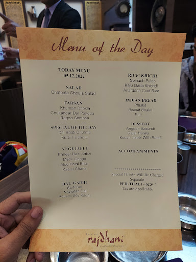 Read moreBe aware if going to Rajdhani in Meenakshi mall. They are running a promotion that offers thali on every tuesday @ Rs. 349 + taxes (regular price is Rs. 649 + taxes). Having had the not so delicious thali (just an average one, A2B or Nagarjuna thalis are way better than this) we were presented with the bill that appeared to be savory instead of a mouth watering dessert. The bill was with regular price of Rs. 649 + taxes. When asked they politely stated the offer is not applicable on public holiday, not sure what public holiday it was on 14th November though! Typical rajdhani style of cheating customers. While Diwali lights were trying to bring radiance of happiness among people, rajdhani was trying to spread agony among it's customers. Most of the people were not really happy there and many of them bursted into anger as crackers were not permitted inside! First of all 14-11 is not a public holiday. Secondly they are not suppose to display the promotional offers on the day it is...
