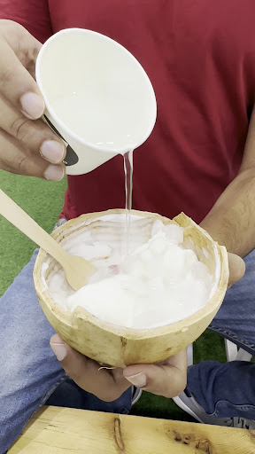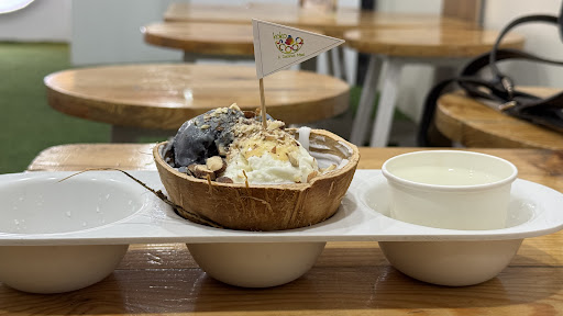 Now, hereâs the real treat: the way they serve their ice cream is a game-changer. They take a fresh coconut, scrape out the tender malai (the creamy inner coconut flesh), and then fill the shell with your choice of ice cream! The coconut shell isnât just for showâitâs part of the experience. Plus, they give you a glass of refreshing coconut water to sip on as you indulge in the creamy goodness. Itâs such a cool (and refreshing) touch that makes this place stand out!