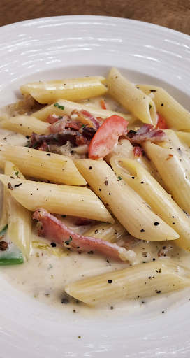 -- White Sauce Pasta - Creamy textured well cooked pasta to pair your wine :)