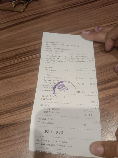 I recently had the unfortunate experience of visiting Lakeview Milk Bar on MG Road in Bangalore, and I must say that I was thoroughly disappointed with the quality of their service and the shocking discovery I made in my black forest cake. It is with great regret that I write this review to warn others about the subpar experience I had at this establishment.