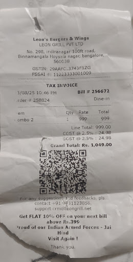 Moreover, the service at Leon's was good. The staff was attentive, friendly, and prompt in taking orders and ensuring a smooth dining experience. They were knowledgeable about the menu and provided helpful recommendations.