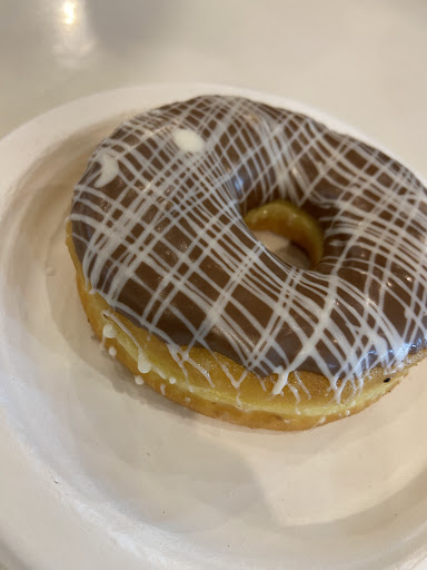 Contemporary outlet of a chain donut bakery selling instore & delivering boxes to customers' doors.