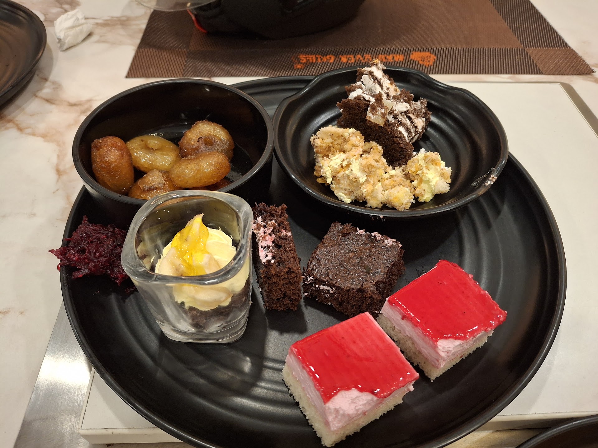 Dessert - I saw a couple of empty plates, strawberry pastry and chocolate brownie apparently empty. The Mango smoothie was nothing but Mango lassi, artificially flavoured.