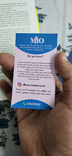 Read moreI generally hate cookies because of the way it is made in most places. All I can find in the cookies are sugar crumbs. BUT The cookies from Made in Oven are something else. Filled with cake and gooey rich chocolate inside, each bite is ecstasy. Not just me, everyone I have asked until today to take a bite of it have thoroughly enjoyed it and have always dug in for a "little bit more". Do get ur little slices of heaven from these guys. I don't mind writing this review because ull are so worth it. And also, what's best is , they make white chocolate cookies too. Since I cant have anything other than white chocolate , this has become my go to place to satisfy my chocolate addiction đ đ Iv come back to edit this. Wanted to mention that the packaging is classy & super cute...