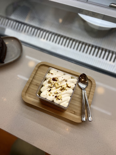 Small portions, really small. A full English breakfast (supposedly their biggest breakfast at 390 after their American breakfast, which is 410) was too small. Where a full English is supposed to be more than filling for anyone - was not filling at all. There were a total of 4 mushroom halves, 2 very mediocre hash browns, a puddle of mashed potatoes with 2 tiny tomatoes on top, and 2 halves of a singular toast. 2 halves - not 2 slices - of average bread. And 2 rail thin sausages which were nothing short of average too. All of this after woefully waiting for 30 minutes in non-rush hour time with almost no customers inside. Naturally, had to order more to fill my appetite. Their classic pancakes with maple syrup were alright too, with some form of cream (icecream?) on top, which slid right off when cutting into the 3 pancakes stacked on top of each other. Their chocochip pancakes did seem more appetizing though. Finally got a frappe, which had too much cream (whipped, I believe) to even taste the coffee. By the time we got to the bottom 1/3rd of the glass, there was only some watery cream left. Their Orange Mojito was nice 👍, probably the highlight of eating there. But then when a Mojito is the highlight of a supposed cafe, that says something about their regular menu.