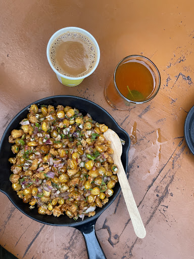 Pretty place to hangout, mainly for chai coffee time. Nicely set up with lights and cute wooden tables and chairs Has an open ground floor and covered 1st floor Didn’t get much time to try few things to eat over there but they have good options in the menu Chai was good and tasted a bit different. We had ginger tea and I think they add kesar in it coz it tasted a bit like kesar but it wasn’t bad Friendly staff, responded well with a smile I’m sure there must be ppl visiting the place regularly coz it has those vibes for sure Try it for yourself coz I think it’s the only good open cafe in the 5-8km radius You can see few available items in the menu that...