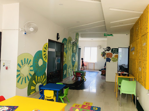 They have seperate seating for kids too where they eat all by themselves without the mom's disturbing them🤭It's very helpful for the new parents to bond with other parents and make friends. They also have a work space where the parents can work while the kids play.The vibrant colours and the funky wall arts attracts the kids and they have lots of games and toys to play.