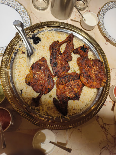 We ordered the family Mandi, which included a delightful assortment of chicken varieties: alfham, tandoori, and kebab. The dish was a feast for both the eyes and the palate. The presentation was impressive, with each type of chicken artfully arranged around a bed of fragrant rice. The flavors were rich and distinct, with the alfham offering a smoky and spicy taste, the tandoori chicken being perfectly marinated and cooked, and the kebab adding a juicy and savory element. It was clear that a lot of care and expertise went into preparing the meal, and it definitely delivered in terms of taste and visual appeal.