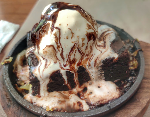 Firstly we ordered Spanish Omelette and a cappuccino. Omelette was really amazing, it had fried onion, potato, few olives and Broccoli which proved to be a perfect embedding in Omelette. Then we tried Penne Alfredo Veg, it was a creamy pasta loaded with mushrooms and broccoli which were cooked to the perfection. After that we had veg sizzlers and Orange Juice. Sizzlers were really sizzling and were a blend of several dishes with rice base. I liked mashed potatoes the most. We also ordered Veggie Pizza and brownie frappe. That pizza was overloaded with cheese and certainly I loved it. To conclude the meal we ordered Sizzling brownie with ice cream and was so tempting. It was served perfectly.