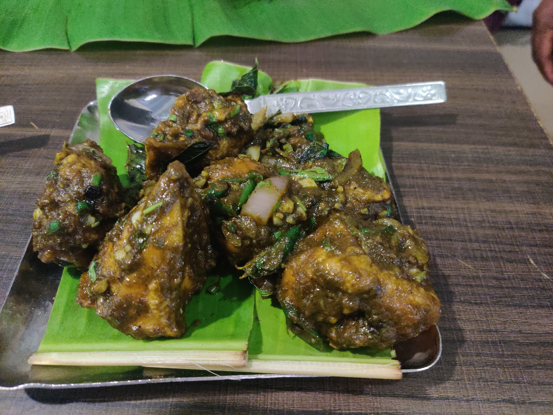 After visiting multiple Andhra cuisine restaurant in JP Nagar area, it was out turn to visit Nandhini. Had ordered couple of times and decided to visit to try more of the varieties. Located along the busy 24th main road, the restaurant is located in the first floor, which is lift accessible. However, the parking itself is a challenge here although there is valet parking (we didn't see any valet though) and taking stairs to reach the ground floor might be difficult for those who have difficulty. We visited on a Sunday afternoon and it wasn't crowded much. We got a seat for 6 of us. We ordered the following: Masala Papad which is served as two pieces and the papd itself was spicy, maybe due to pepper based papad; Hot n Sour Chicken Soup and Chicken Manchow Soup; Chicken Kakinada; Paneer Satay; Nandhini Special Chicken Boneless Curry and Bread Basket; Special Chicken Boneless Biriyani and Gudbud. The soup accompaniments like soya sauce wasn't available and the chilli vinegar wasn't as it is supposed be, they just put some chilli chunks in vinegar and placed it on our table. The chicken main course was their special item which isn't there in menu but tasted good. Bread basket has one piece each of stuffed kulcha, Butter Naan, Butter Kulcha and Paratha. Paneer Satay is also not in their menu but available basis the menu present in online apps. One of soup was mixed up but was promptly replaced. For beverages, we ordered the following: Virgin Mojito; Orange Blossom; Trip To Heaven; Kiwi Daiquiri. All the beverages were good. Overall the food taste was good but we felt full just after the starters which makes us feel there was soda powder added. We never felt so in places we visited just after finishing starters. Some of the menu items were unavailable as well The ambience is decent and staff are really friendly and good. Service was also quick. The rest room is clean as well. Finger bowls are served on table. Price factor is less compared to other Andhra restaurants. Worth a visit once. You would get discount if you pay...