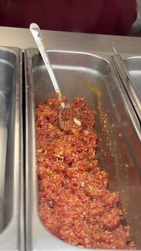 The eatery operates on a self-service model with standing tables, reflecting its street-food roots. While seating is limited, the quick service and bustling atmosphere add to its charm.