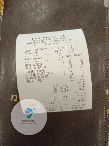 Read moreMe and My friend Harshal who’s 23 years old staying next to Vishwa Vidyapeeth we went to New Udupi Veg , it was around 2 pm and raining heavily and customers were less in number , so He ordered Channa Poori and I ordered South Meals , Taste was absolutely Average, but the thing is In Channa poori - Channa was served in small cup and poori was as big as 30/40 site , and Harshal was like let me complete this , then I can order small cup of Channa if needed , as the time goes Channa got over and there literally small portion of poori was left , so he asked waiter for Channa that too 2 spoons of Channa he asked , But Waiter or Maybe Manager we don’t know Arrogantly he told No we won’t give , Papa my Friend Harshal he felt very bad : so he directly asked what should I do with this poori , The Attitude they had they didnt even respond , we both felt very bad , they say customer is king and queen ,but no proper food service :( At last they gave finger bowl , and the water was directly sourced out from Refrigerator, cause it wasn’t hot or atleast warm . service No...