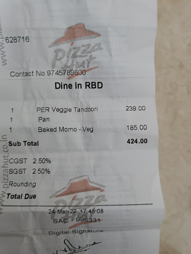 I repeat don't order their momos it's worst momos i have eaten. It's filled with Ginger Garlic Paste only and they just put cheez on those bad smelling momos. ( roadside you will get better momos in 20 rs than pizza hut )