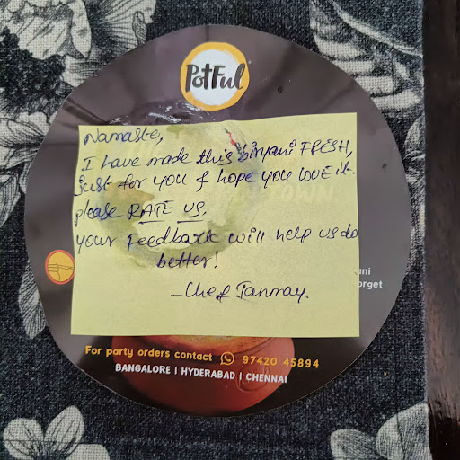 Potful has made it a habit to deliver food late and cold. Happened 3 times with me (April 18, 2023 / August 24, 2024 / Oct 21, 2024). Every single time they say that they will try to rectify it the next time. However they will never improve based on my experience.