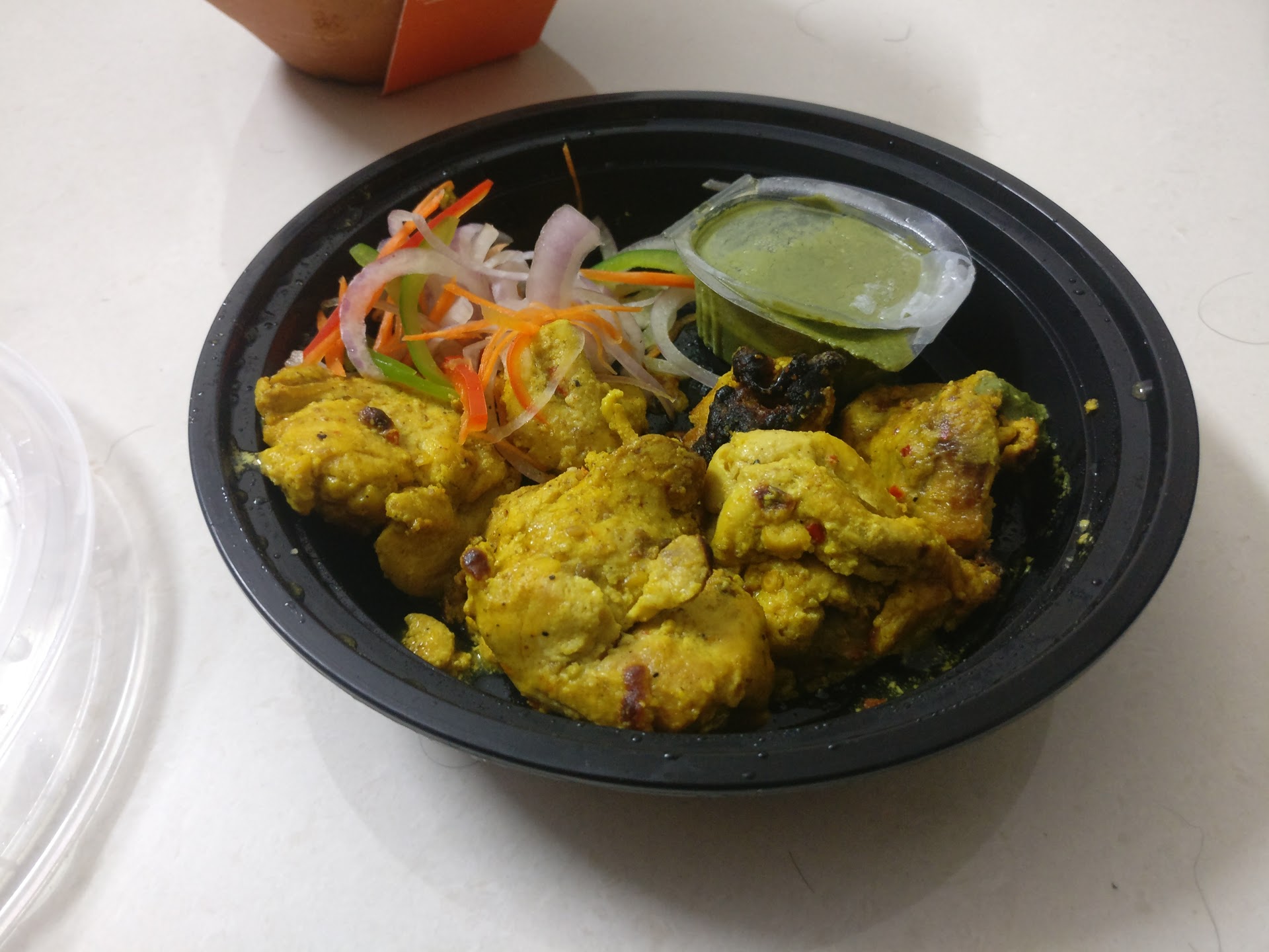 Panner tikka :- had six numbers of panner pieces in it and onion salads with mint chutney in it. Packing of this dish was also neatly done. panner cubes were quite big in size and was super soft and tasty.