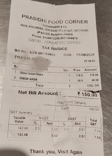 Overall Experience (4.5/5): Prasidhi Food Corner is a hidden gem for breakfast enthusiasts. The combination of delectable dishes, inviting ambiance, and excellent service creates a memorable experience. I would highly recommend this spot to anyone looking for a delightful breakfast outing.