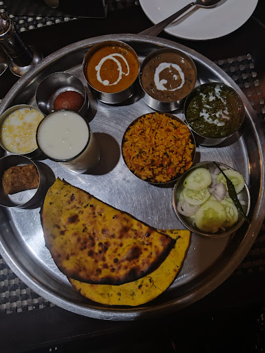 over priced (eg: 1 small baati 40rs (size of laddu), 1 makki rotti was around 80rs)