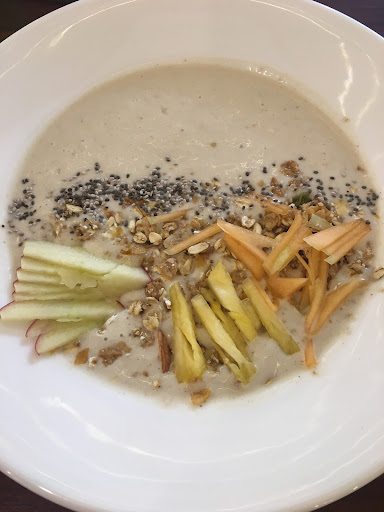 What a place well planned by the couple. Love at first sight starting from the colour combination and wall painting. Healthy food and vegan options less in Bangalore. But this place serves you the healthy options in every course of menu. I loved their dessert option which was no dairy ingredients in them.