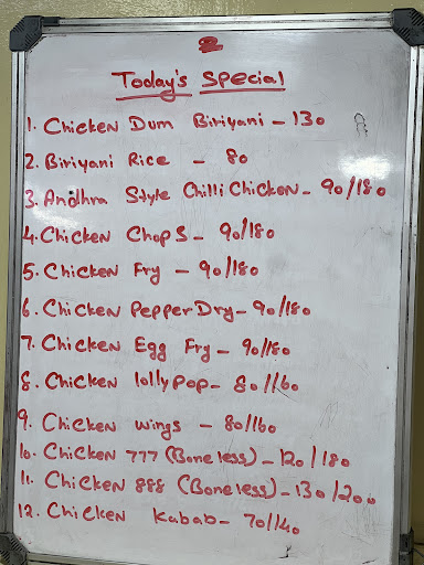 Read moreThe best Andhra style chicken biriyani in the town. It had a really good taste. Both Quality and Quality were good. The Chicken chops were really good and went very well with the curd rice at the end of the meal. Chicken Kebabs was very soft and tasty. This place has self service. So take a coupon and wait for your food to be served. Everyone is friendly and helpful. The place is clean. The parking for the four wheelers is a bit difficult though but you can manage to park your...