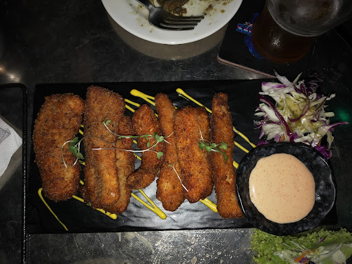 Great selection of Brewed Beers with amazing food consisting of various cuisines. In starters we had the Chinese Style green Chilli Chicken which was deliciously spicy and served in a very creative platter. The Fish Baton served with Spicy Mayo was equally mouth watering. The Pizzas served are all thin crust(my favorite) and crispy. We had the Beef Tenderloin Pizza and we just could not stop eating. For dessert The Flambéing Gulab Jamoon is a sight to behold and equally tasty. They also a great selection of sizzlers and burgers(both veg and non-veg)