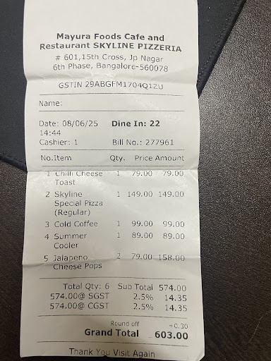 I’m writing this review a week later with immense disappointment, anger, and sadness. We visited Skyline Pizzeria on 8th June 2025 with high expectations. A few starters like jalapeño cheese pops, pizza, and chilli cheese toast were decent — but what happened next was nothing short of horrifying.