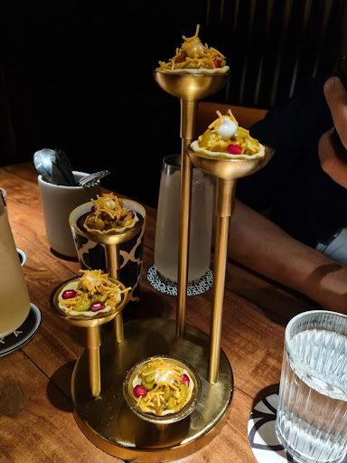 Food : Sad . A flopped attempt to give a designer twist to regular Indian food . We tried about 7 different dishes . edamame tarts - they killed the mild flavour of edamame with some masala over powering it . Scallops - the flavour got lost in the spicy tomato based masala. The taste of Kerala sea food masala lingered in mouth and the scallops went unnoticed. We tried the fried chicken and Thai chicken satay. Okay but nothing to write home about. Some mutton on teplas . It tasted like a typical Kerala preparation on teplas. 3 nos of 2inch tepla with half a spoon of boneless mutton on it . We were charged about 360 including GST for that. They had soft shell crab. Which i would say was the only dish that tasted good. Presentation was nice . Most dishes served on plates while the edamame was served on what looked like a candle stand.