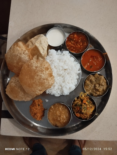 South Indian Meal Thali on the other hand will have one dry veg which generally tastes good, dal will be good, quantity of rice will be good, 3 poori, 1 veg gravy which will not be sweet and plain curd. - Rs 80