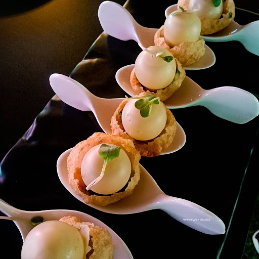 Pani-Puri Surprise: As a fan of street food, I was thrilled to try this playful take on pani puri. The crispy shells filled with tangy water and a medley of chutneys were a delightful surprise.