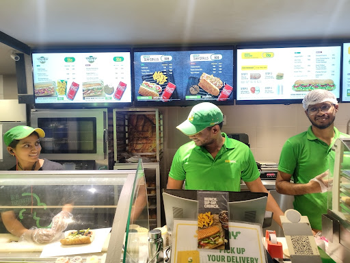 Quite literally the slowest and worst managed Subway ever. This place is absolute chaos and people have no idea whatsoever on how to run this franchise at such a prime location. No sense of queue and order. Every single delivery person hogs the counter and they are not even cleared. Only one person seems to know how to make a sandwich or a salad and the rest are like fish out of water and arrogant to boot. The tables aren't cleaned and the items are all over the place. Vegetarian subs are prepared at the non-vegetarian side and people seem to walk in and out of this place with nothing getting done. For a franchise that makes its name on speed this one is not far from shutting down if the personnel...