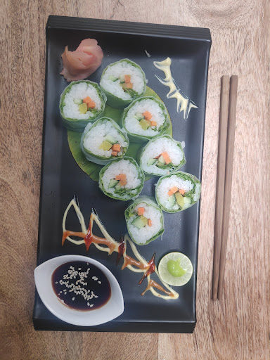 Bell peppers, zucchini, avacado, Asparagus, shitake mushroom, spinach, cucumber, balled inside vinegar flavoured sticky rice wrapped in black dried out seaweed paper or rice papers & seasoned with roasted sesame seeds so as to nicely balance the whole raw feel. The platter consists of one sushi in particular that's rolled in corn flakes powder & deep-fried which goes too well with the crunchy bell peppers. The taste is enriched with a dip in the soy sauce/wasabi/Japanese style mayonnaise. Tropical fruits like mango are used to crown the sushi which completes it's taste as well. The chef has enraptured our senses with the presentation which makes it all the more delish. Taste : 4/5 Price : 440 /-