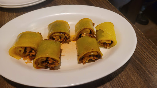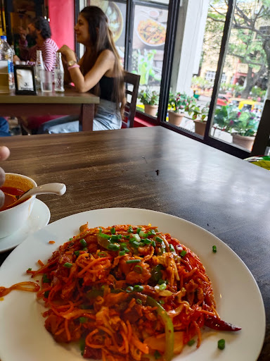 Thukpa is a kind of noodle soup popular in Tibet. Thukpa was on point along with the Thenthuk and the Mothuk which is Thukpa with momos in it. Thukpa is usually milder but you can ask for it to be made spicier. Since you have a lot of soup, always ask for tingmo which is this spiral bread which you can dip in the soup and eat. This combination is absolutely phenomenal. Thenthuk is a similar to thukpa but the noodles are wider. They have some Bhutanese options as well which was a surprise to me. The Shakamdatsey is what I tried here. My friends finished it before I could take a picture 😂 Its spicy and cheesy and has fried chicken and onions. Really tasty.