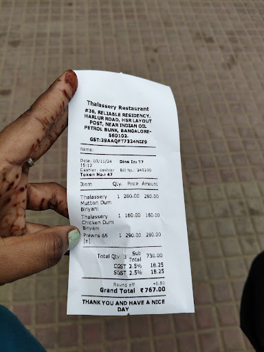 Specifically to Harlur branch : They are not checking the quality and taste of the food they deliver atleast once in a week. management trust those chef , I bought Kerala parotta , It was good in the past, but last 3 time it was worst. No layer in parotta, its just they make like chappathi and flow the oil and give it. Taken parcel to home and checked , the parotta is like rubber , issue is they did not make proper mixing ( dough ) is lacking here, the taste mainly comes from that, I did ignore 1-2 times as Thalassery restaurant is my favorite. I am forced to write this bad review by watching the way they prepare ( we can see it) worst. If the management periodically not checking the quality of every item their chef ..this what happens. board they mention authentic kerala parotta, but it tasted worst than road side tamil type ( the thick parotta...