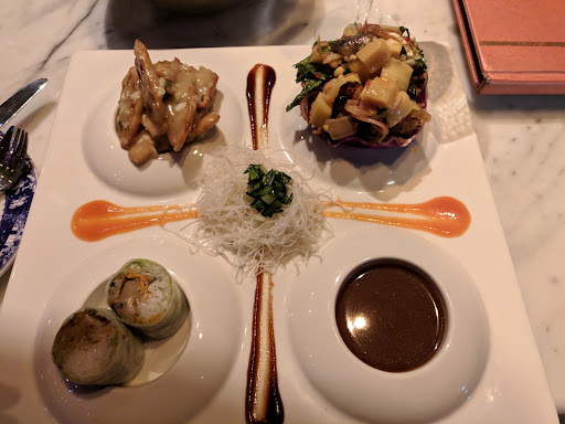 Read moreBangalore never seizes to surprise you !!! To begin with the hotel gives you an amazing old time Bangalore feeler as soon as you enter. The pathway leading to the lounge and green every where is just amazing. After giving the car for vallet parking we realised that the blue ginger restaurant is in a different side and you need to walk, it's a nice walk on the corridor with pictures from old times. Blue Ginger is a Vietnamese restaurant sorrounded by forest like ambience and nice BIG tables with nice view and green all over. They have good choice of wine and the food is close to Chinese/Thai(first time in a a Vietnamese restaurant). Though I don't remember the lady who served she helped us choosing starters and main course .... Wine was a French one and it was really nice, the person who took the wine order and served the wine can smile a bit more :) over all an amazing experience on the day of our anniversary!! It's was really nice feeling when the hotel came up with the cake to make it special ..... I definitely recommend this place a...
