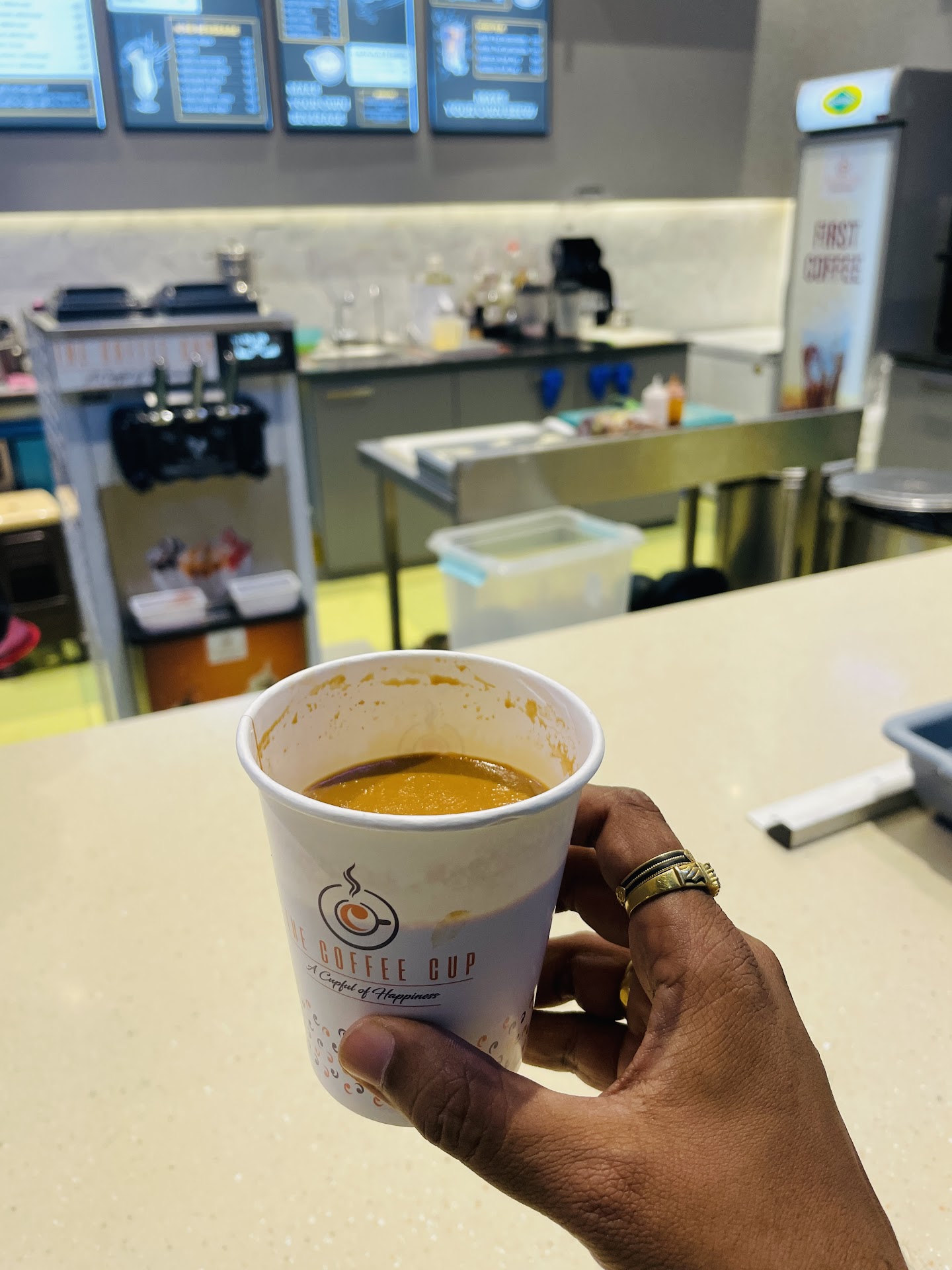 Read moreI recently visited The Coffee cup, Lulu mall, Bangalore with my friends and we had an amazing experience! The ambiance was cozy, and the coffee was absolutely perfect. I searched for mug coffee or glass coffee in the mall, finally found perfect spot to indulge. I looked for French Vanilla latte but Hazelnut latte was only available which was very good. My friends had tea and cappucino which were good.A special shoutout to SAIF ALI for his friendly attitude and excellent service. Kiran and Anjali were friendly. They went above and beyond to make sure everything was just right. I'll definitely be...