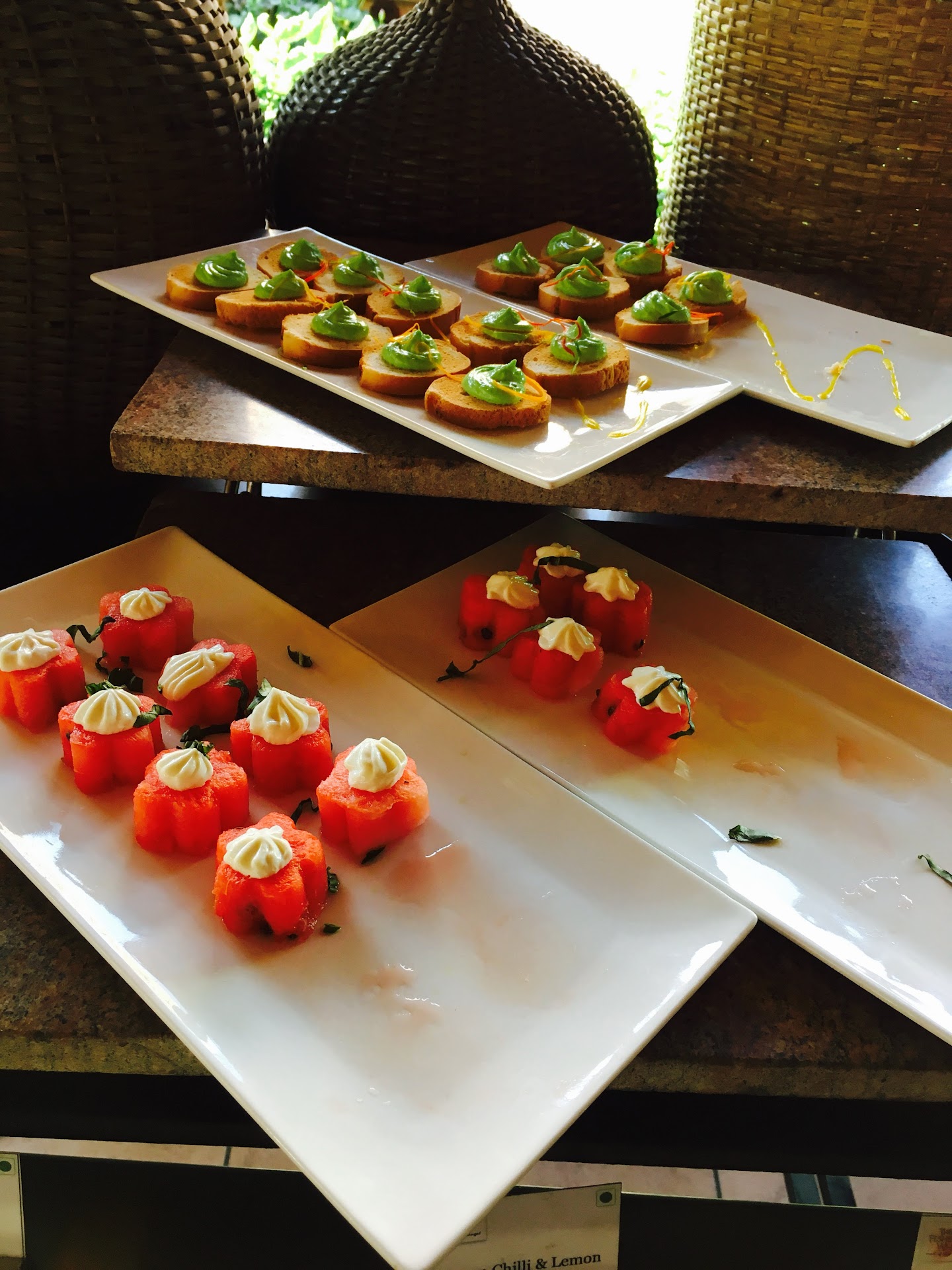 Being a crowded Sunday, we managed to get only an outdoor, open to air seating. We got help to adjust our seating to avoid getting exposed to direct sun. After settling down, we opted for an unlimited Mocktail buffet brunch, & ordered the Pink Lady & a Pineapple Cojito. While the Pink Lady was very refreshing, the Cojito, which essentially was a Virgin Colada, was very soothing in the afternoon sun.