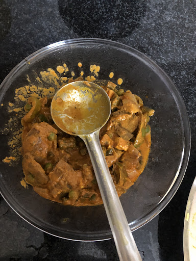 The best and saving grace in this whole episode was the tandoori roti's. I know it sure is possible to mess this one up and I have had my share of that too but this was good. Or maybe it seemed so in the light of the poor side dishes. And oh, the standard pickled onions were ok but that is in no way representative of the cooks skills, or lack of it.